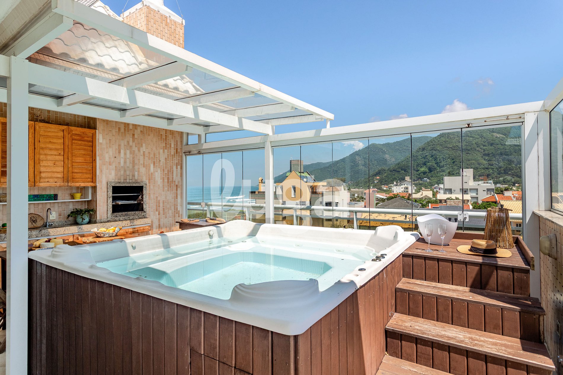 Imagine waking up to the sound of waves and having the beach at your feet. This high-end duplex offers an exclusive experience, with a private rooftop spa and full ocean views. With 4 air-conditioned bedrooms, it is the perfect retreat for those seeking luxury, direct beach access, and unforgettable moments in Florianópolis.