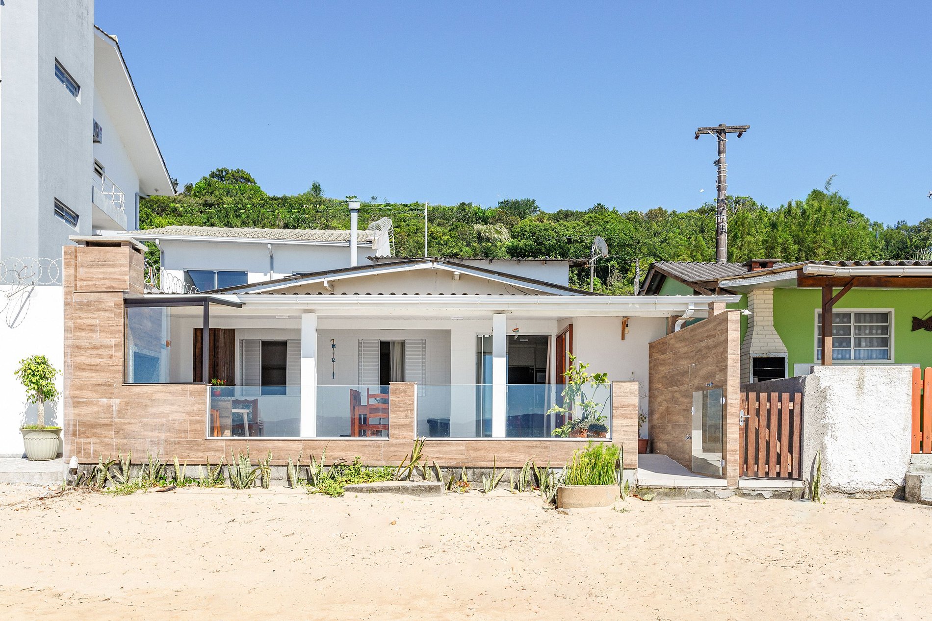 The Beachfront House is an invitation to relaxation and fun. With spacious and well-equipped areas, the property offers 3 comfortable bedrooms, two of them with sea views. The fully equipped kitchen, TV room, and balcony with a hammock and barbecue create the perfect setting to unwind. The beach in front is ideal for swimming and water sports such as stand-up paddleboarding and kayaking.