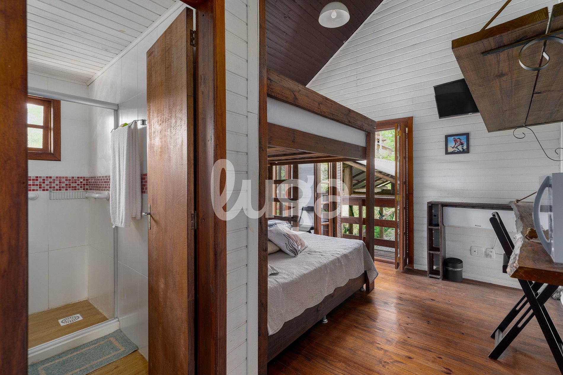 El diseño de la Suíte Front combina practicidad y confort. Dispone de una litera doble, sofá cama individual, iluminación cálida y detalles que hacen del espacio un lugar ideal para descansar. La vista al entorno natural ofrece una sensación de paz y privacidad, haciendo la experiencia aún más placentera. Un punto de partida perfecto para explorar el centro de Gramado y regresar a un refugio tranquilo.