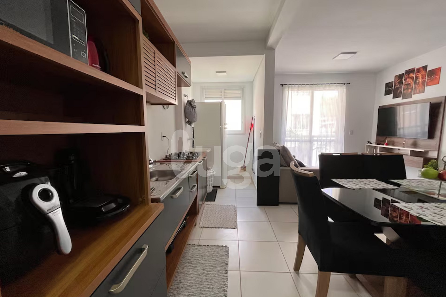 Este apartamento en el norte de la isla acomoda hasta cuatro huéspedes y tiene dos dormitorios diseñados para el descanso. La unidad cuenta con una cocina equipada para preparar alimentos y una sala de estar integrada que se extiende hasta el balcón privado. El edificio ofrece piscina, gimnasio y sala de juegos para visitantes. Es un espacio funcional para quienes buscan cercanía a las playas y una estructura completa para el día a día en Florianópolis.