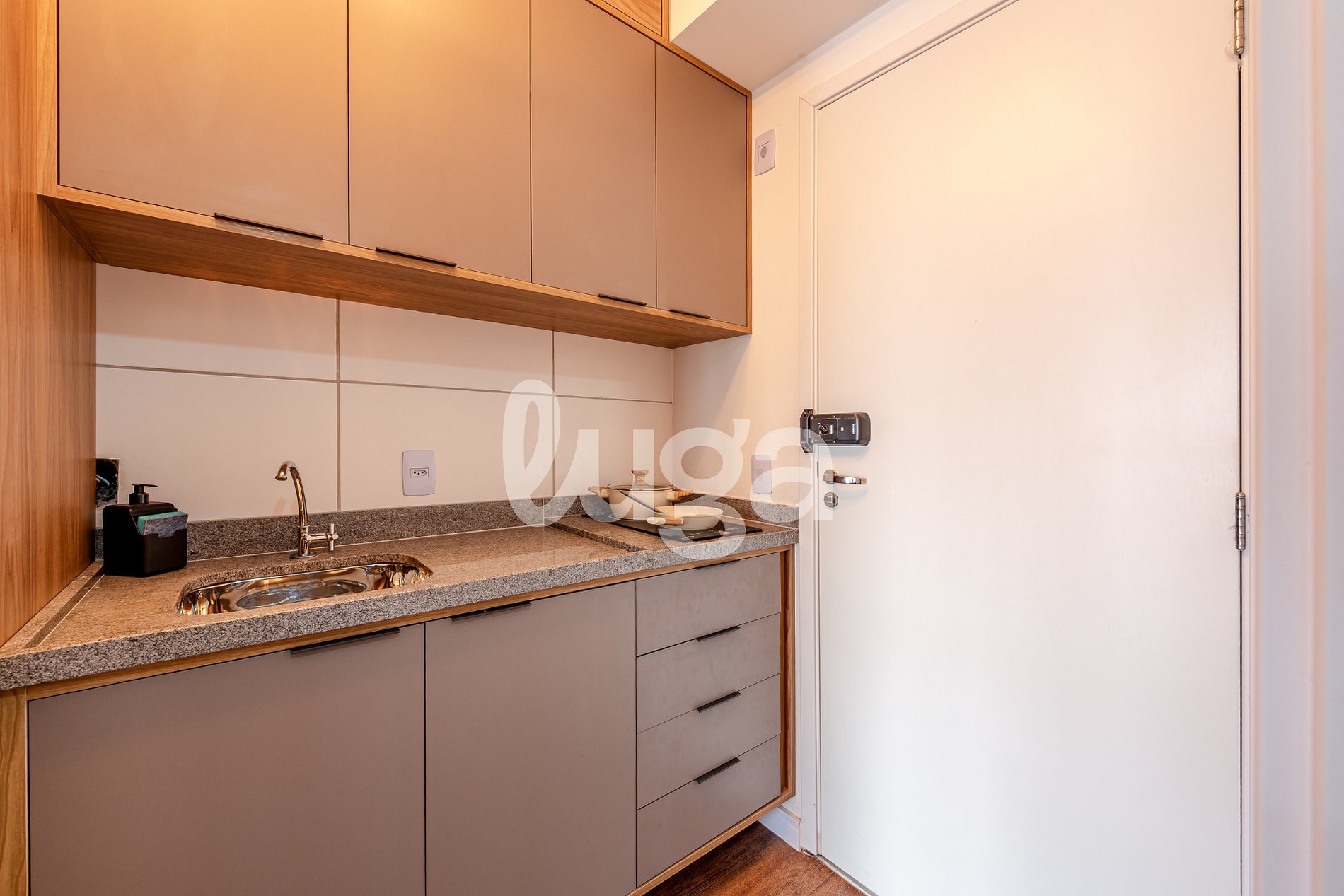 Sumérjase en un ambiente que evoca la calidez del hogar, cuidadosamente decorado con colores neutros e iluminación acogedora. Este estudio de Luga es la elección perfecta para quienes buscan funcionalidad y bienestar. Dormitorio/Estar: Una cómoda cama queen con Smart TV para su entretenimiento y relajación. Cocina: Una cocina práctica y bien equipada, con una placa de inducción de dos fuegos, nevera y cafetera, lista para sus necesidades culinarias. Baño: Un baño completo y funcional, pensado para su comodidad.