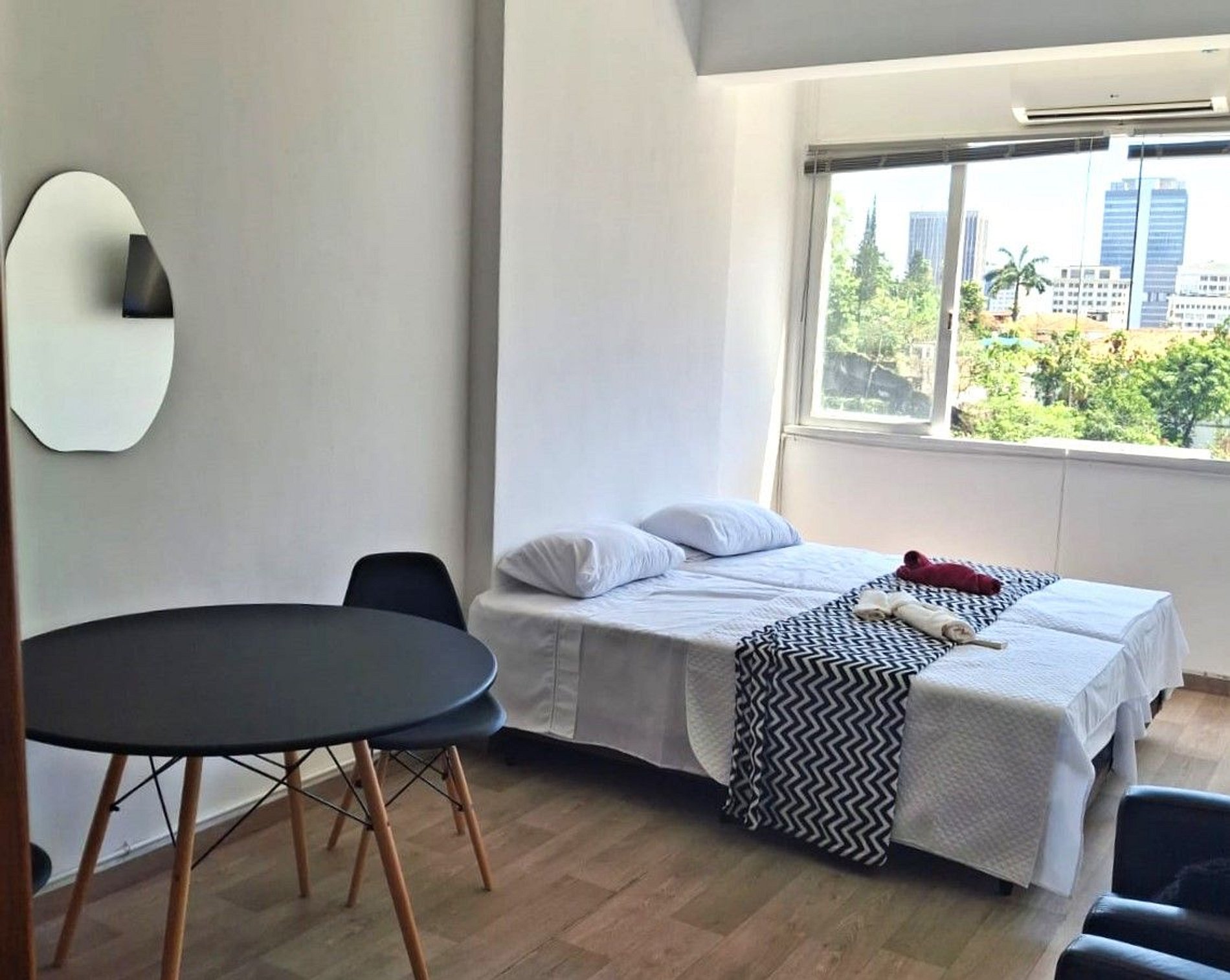 El apartamento ofrece un espacio práctico y acogedor, con dos camas cómodas y todo lo necesario para una estancia agradable. Un refugio cálido en el corazón de la ciudad, perfecto para descansar después de un día explorando lo mejor de Río.
