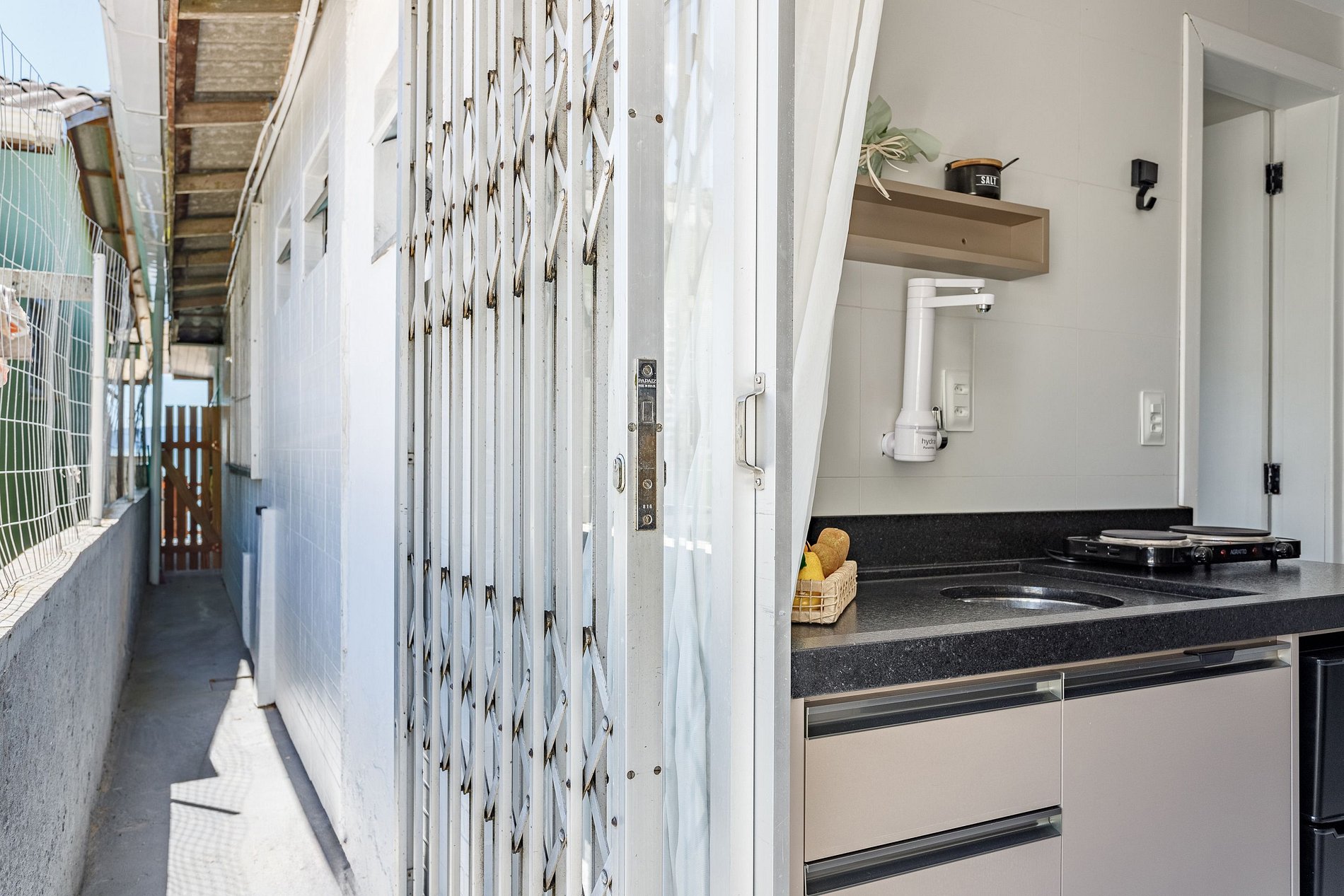 Se houver piscina e jardim, o acesso e manutenção serão realizados por profissionais que entrarão pela parte externa, sem interferir na estadia dos hóspedes. Não há horário específico para esses serviços.