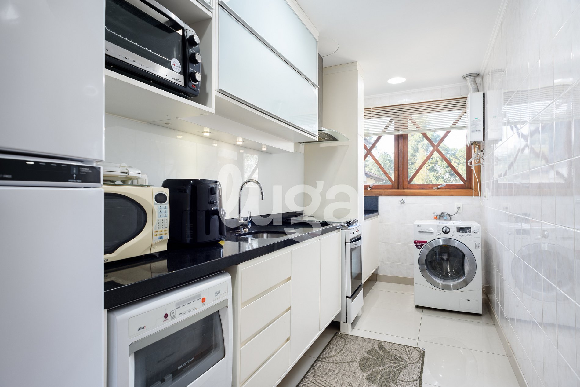 L’emplacement est excellent : à seulement 1,2 km de la Rua Coberta (centre-ville), une promenade agréable. L’immeuble dispose d’un ascenseur, facilitant l’accès et offrant plus de confort à tous les invités. Le garage est couvert, garantissant une plus grande commodité pendant votre séjour.