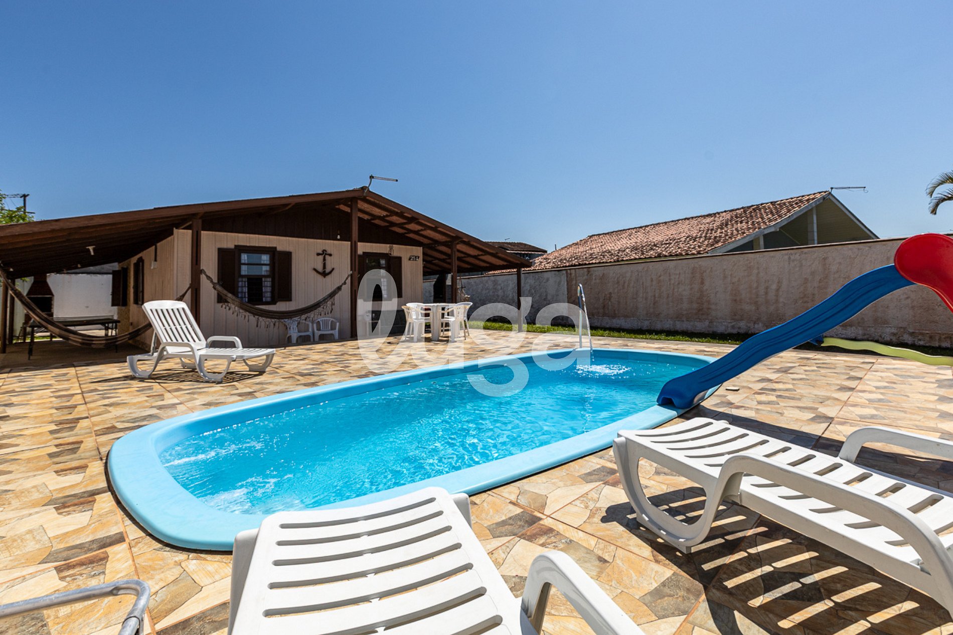 Se houver piscina e jardim, o acesso e manutenção serão realizados por profissionais que entrarão pela parte externa, sem interferir na estadia dos hóspedes. Não há horário específico para esses serviços.