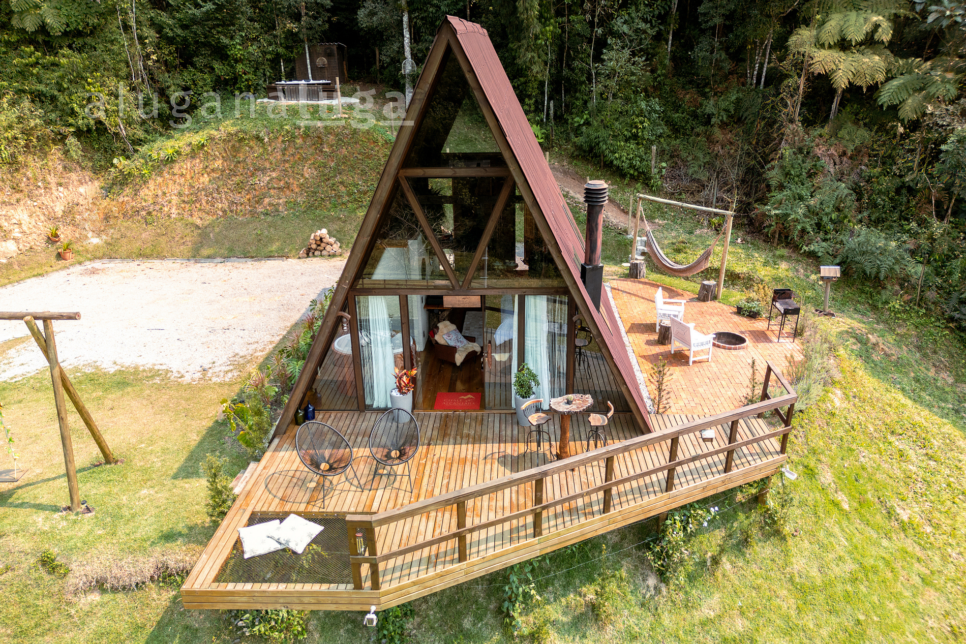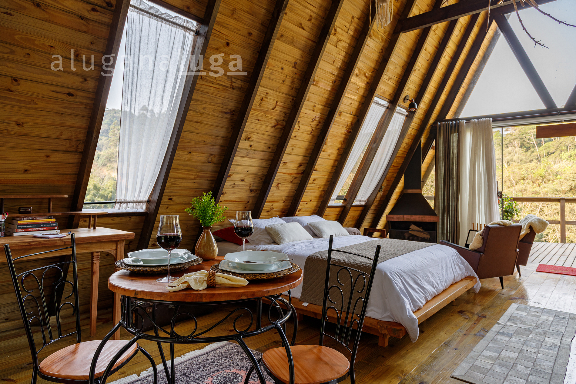 Este chalé é um verdadeiro refúgio para casais. Combinando uma decoração sofisticada com toques rústicos, o espaço foi projetado para criar uma atmosfera romântica e aconchegante. A banheira é o destaque, proporcionando relaxamento em um ambiente privado e sereno. Cada detalhe foi pensado para oferecer uma experiência única e inesquecível.