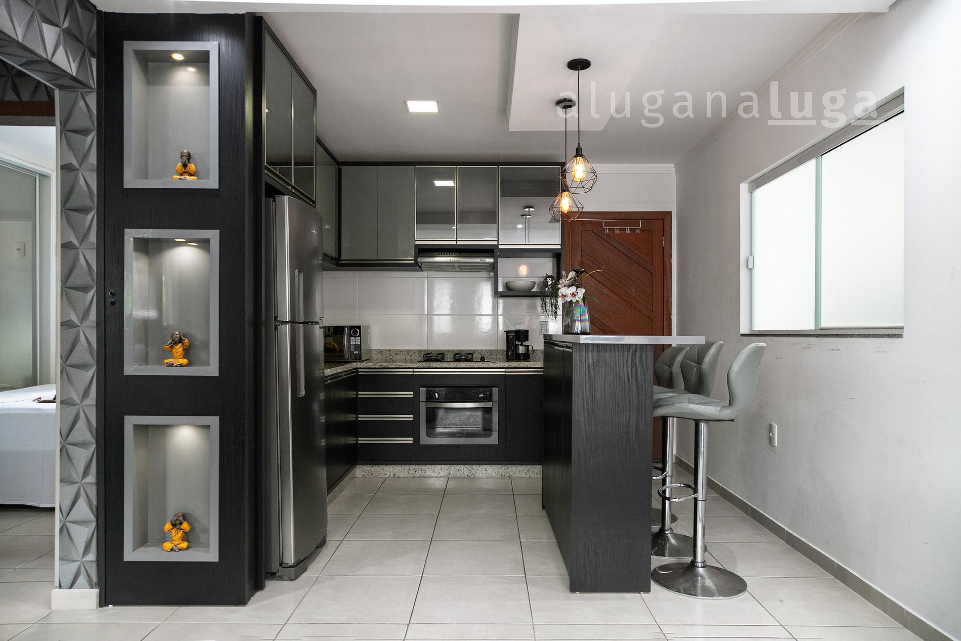 Ambientes integrados, bem iluminados e decorados com atenção aos detalhes. A sala espaçosa convida ao relaxamento, enquanto a churrasqueira privativa no quintal garante bons momentos ao ar livre. A cozinha é completa, ideal para quem gosta de preparar refeições em casa. Tudo foi pensado para proporcionar praticidade e bem-estar.