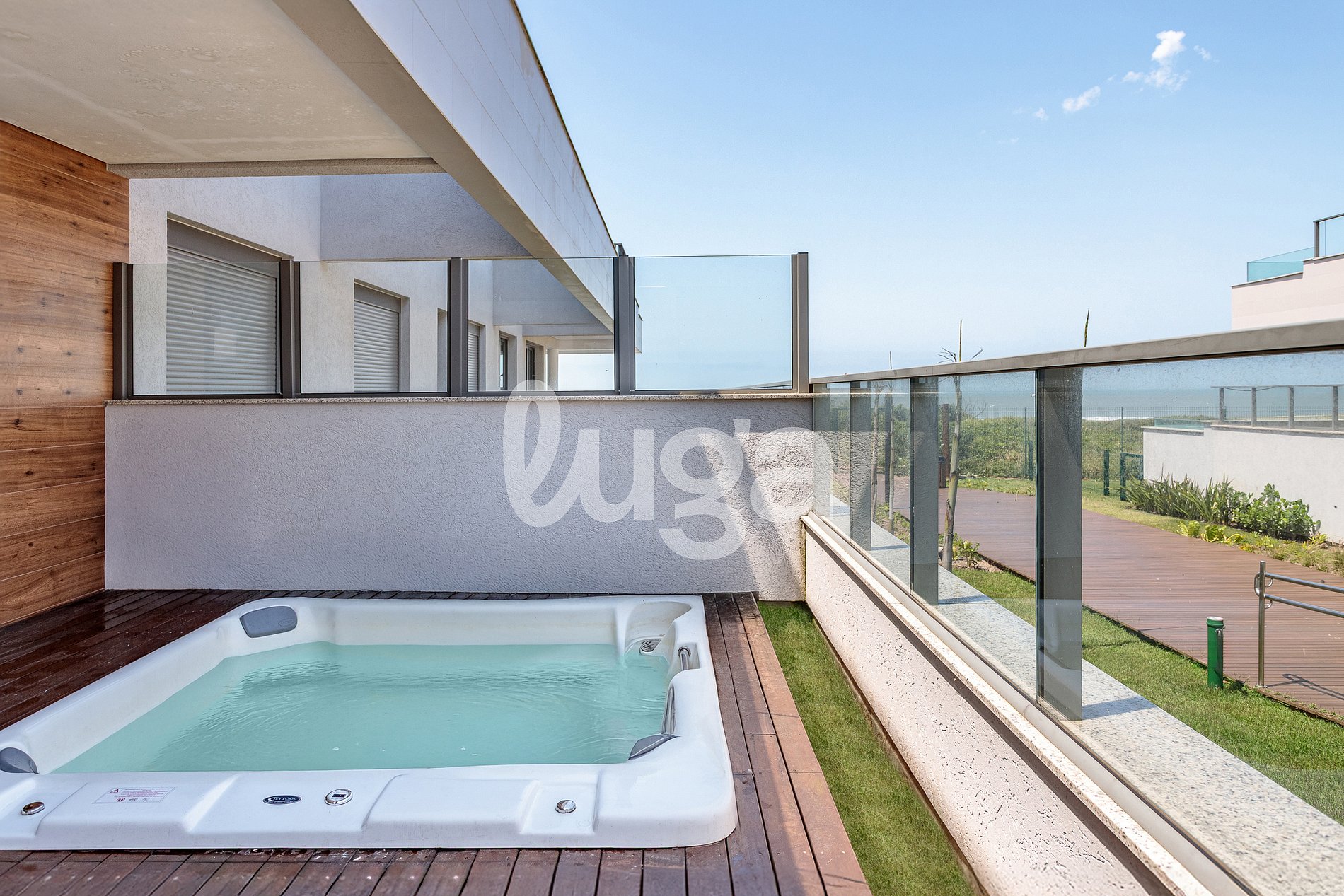 Temos uma banheira na área externa que é apenas de imersão, sem jatos.