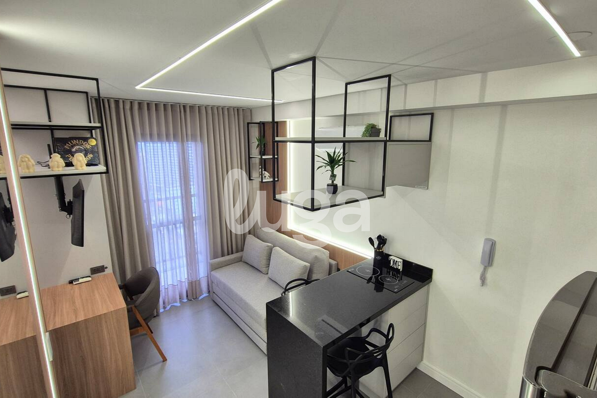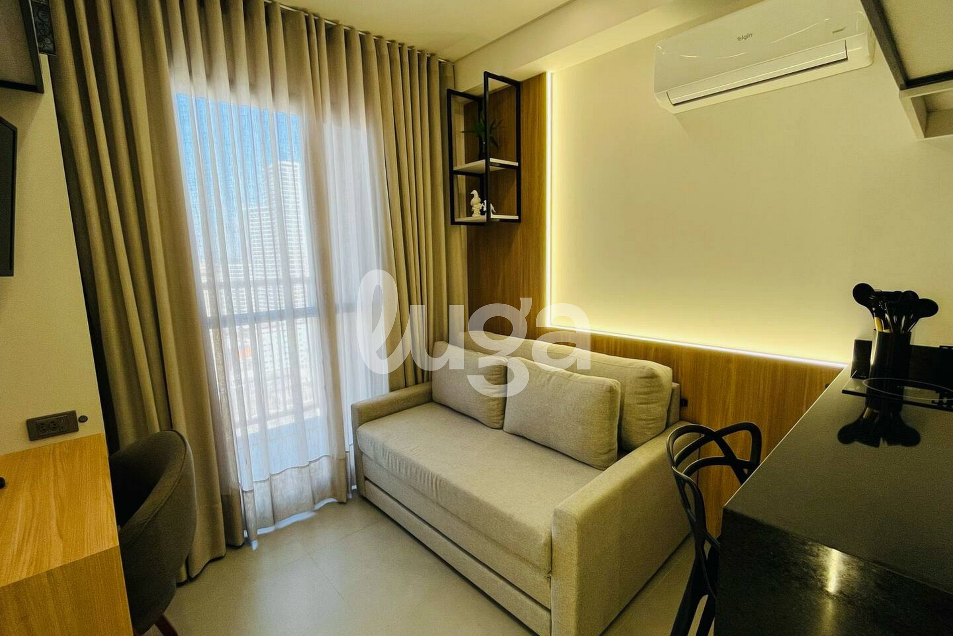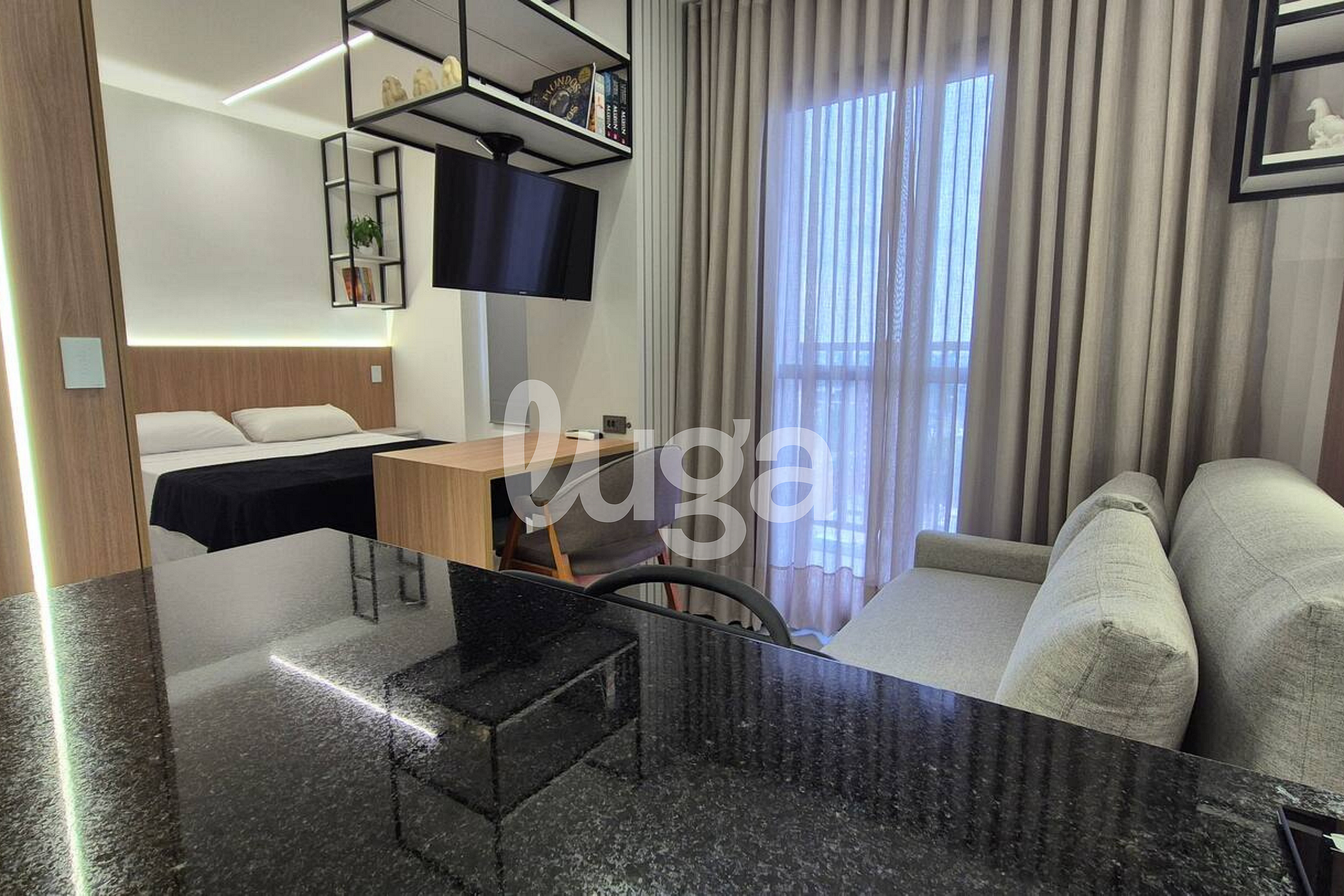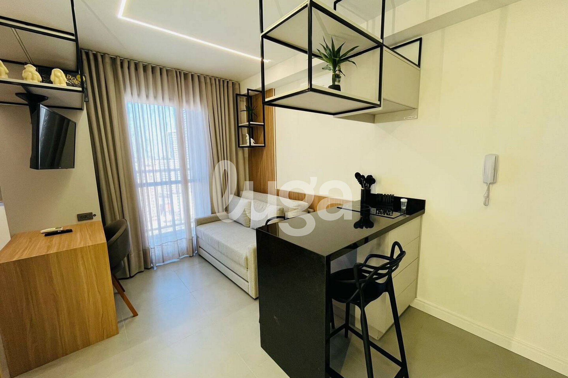 Nosso apartamento é um espaço acolhedor e funcional, novo, todo planejado e decorado com extremo bom gosto. Pensado para o seu conforto, ele conta com uma aconchegante área que integra a cozinha completa e uma cama de casal, proporcionando praticidade. A sala com TV foi inteligentemente desenhada para que a tela possa ser girada e assistida tanto da cama quanto da sala, garantindo entretenimento em qualquer ambiente. É o lugar perfeito para relaxar e sentir-se em casa.