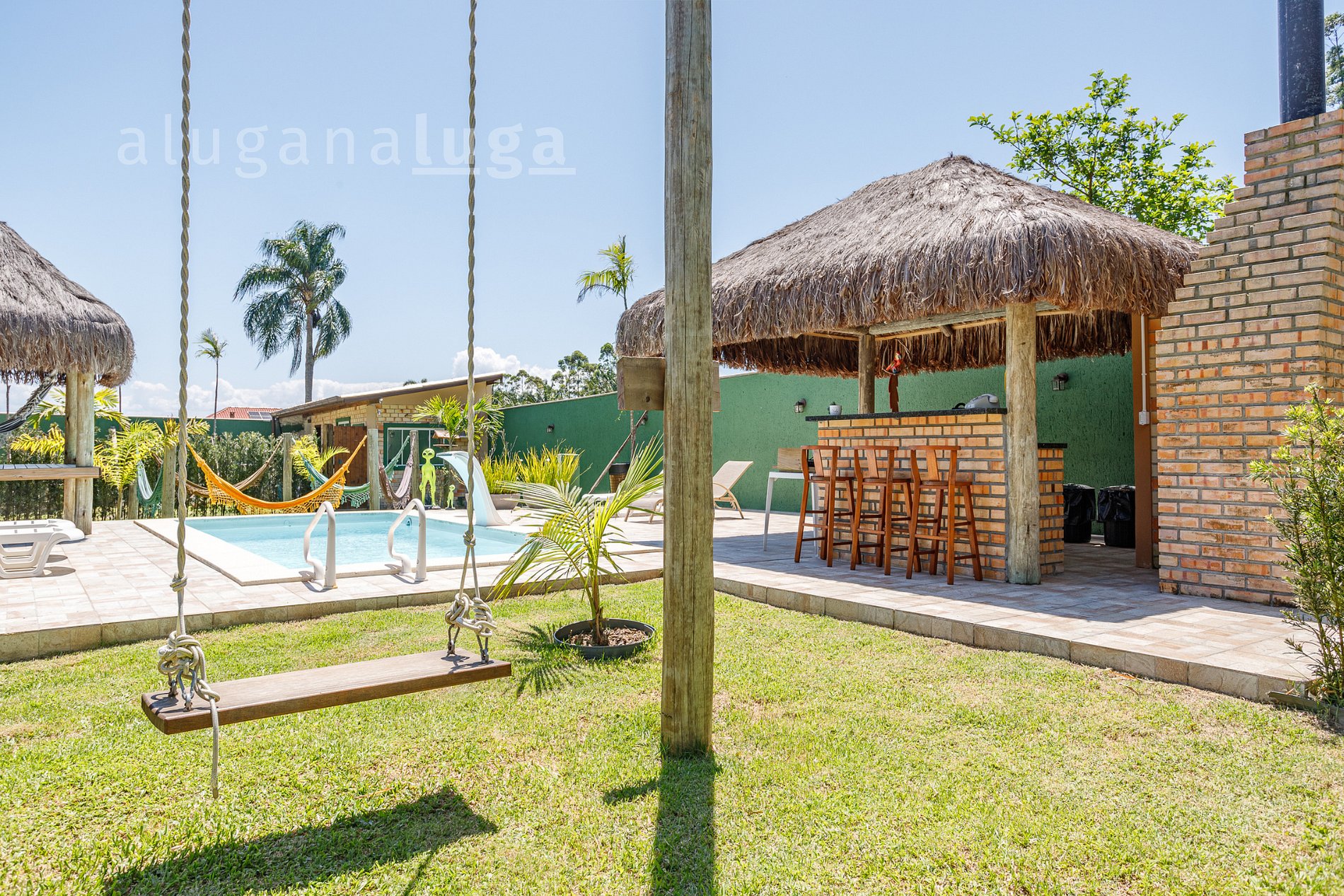 Está rodeada por paisagens verdes e oferece uma experiência única de lazer. Você encontrará uma piscina, área gourmet equipada, redário e balanço infinito, tudo projetado para relaxar e aproveitar momentos especiais. É um espaço acolhedor para descansar e renovar as energias.