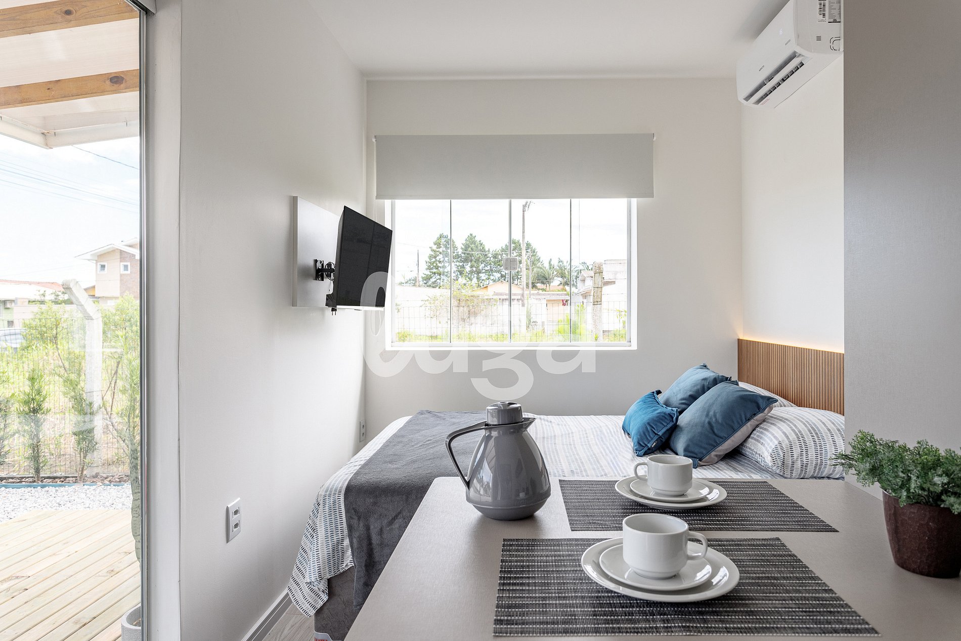 Se houver piscina e jardim, o acesso e manutenção serão realizados por profissionais que entrarão pela parte externa, sem interferir na estadia dos hóspedes. Não há horário específico para esses serviços.