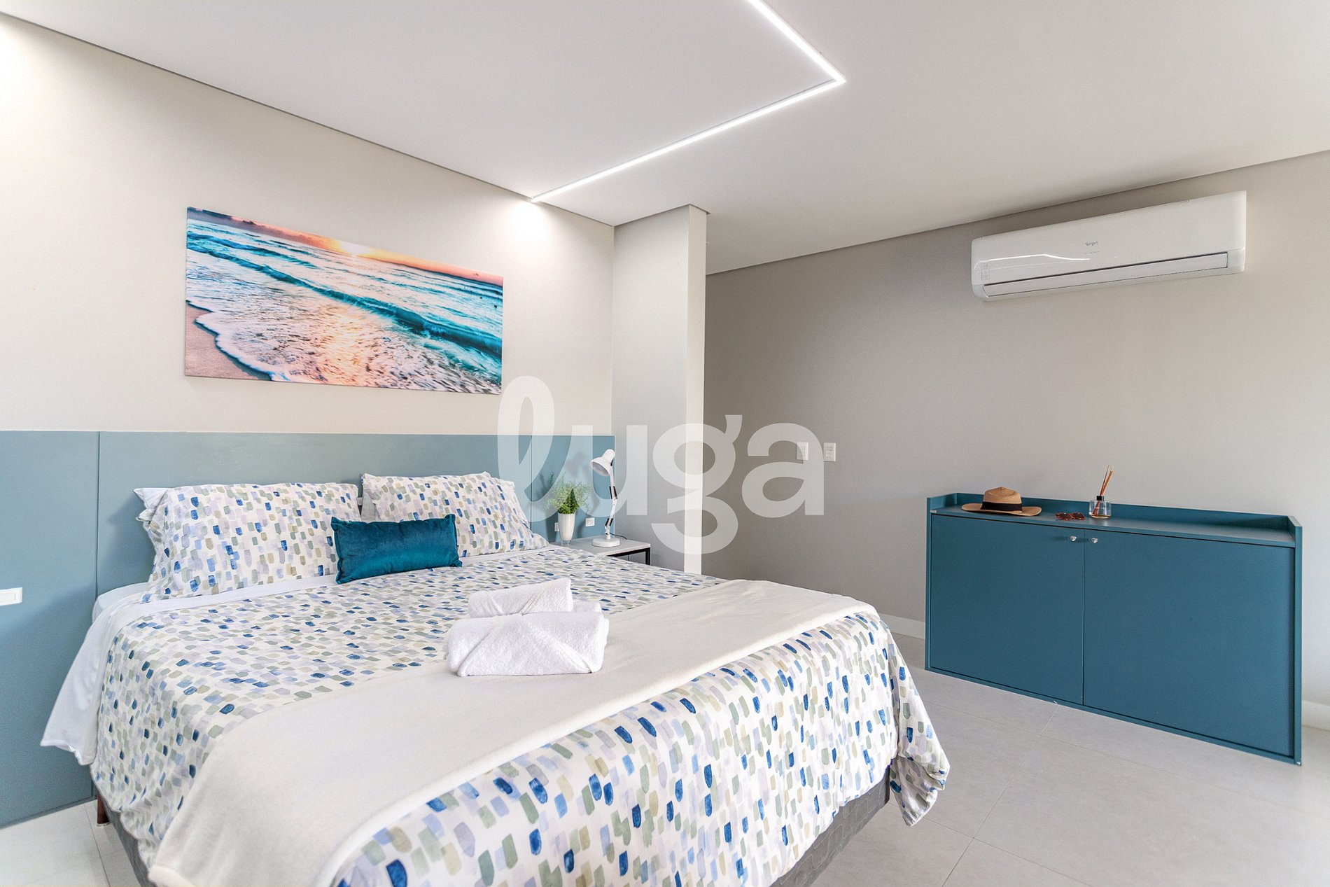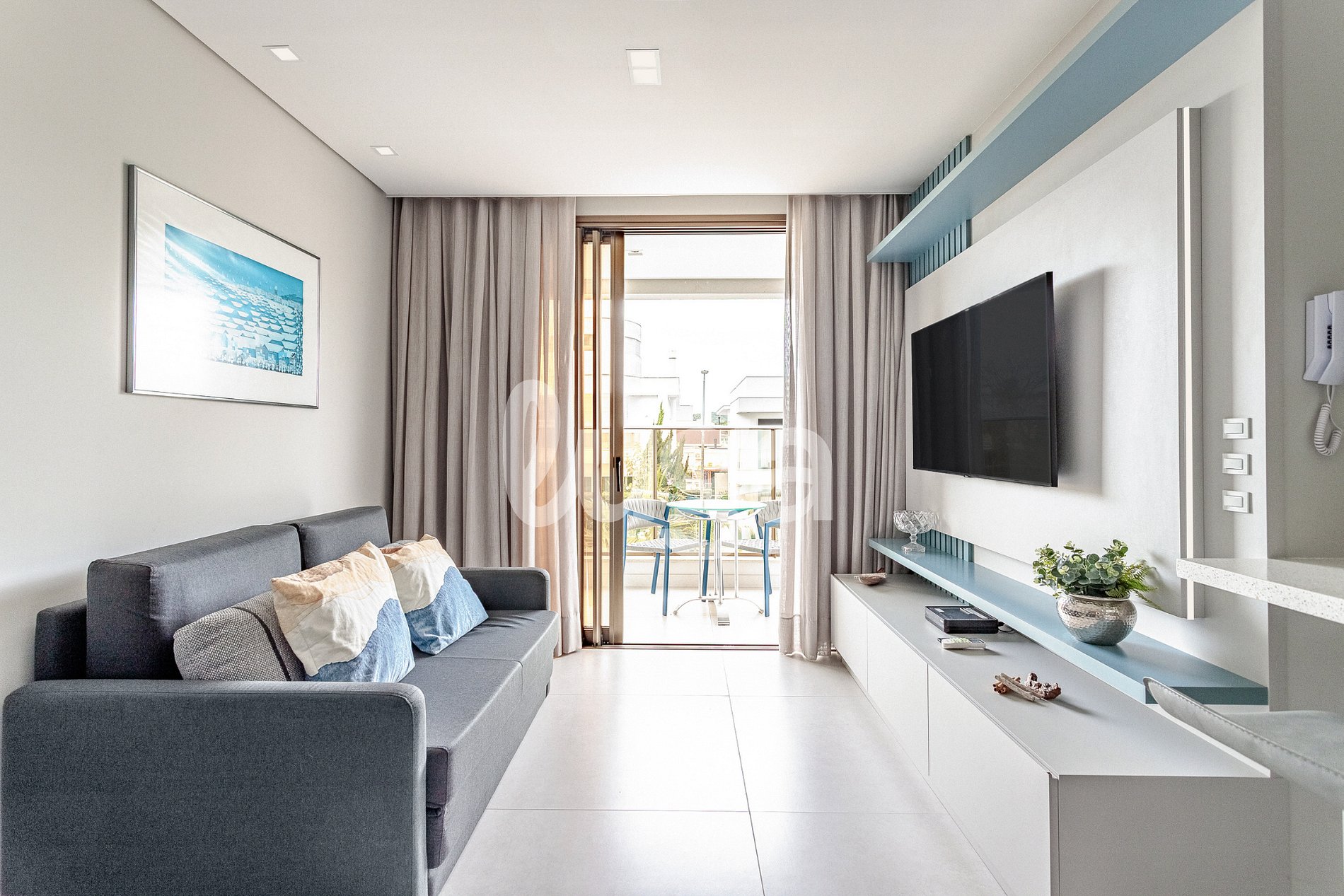 O Jurerê Garden possui 1 quarto com ambientes integrados e bem planejados. A varanda com vista oferece um toque especial para momentos de descanso. A decoração leve e contemporânea, somada ao conforto da cama queen size e à funcionalidade da cozinha, cria o cenário ideal para uma estadia relaxante, com a praia e o P12 a poucos minutos.